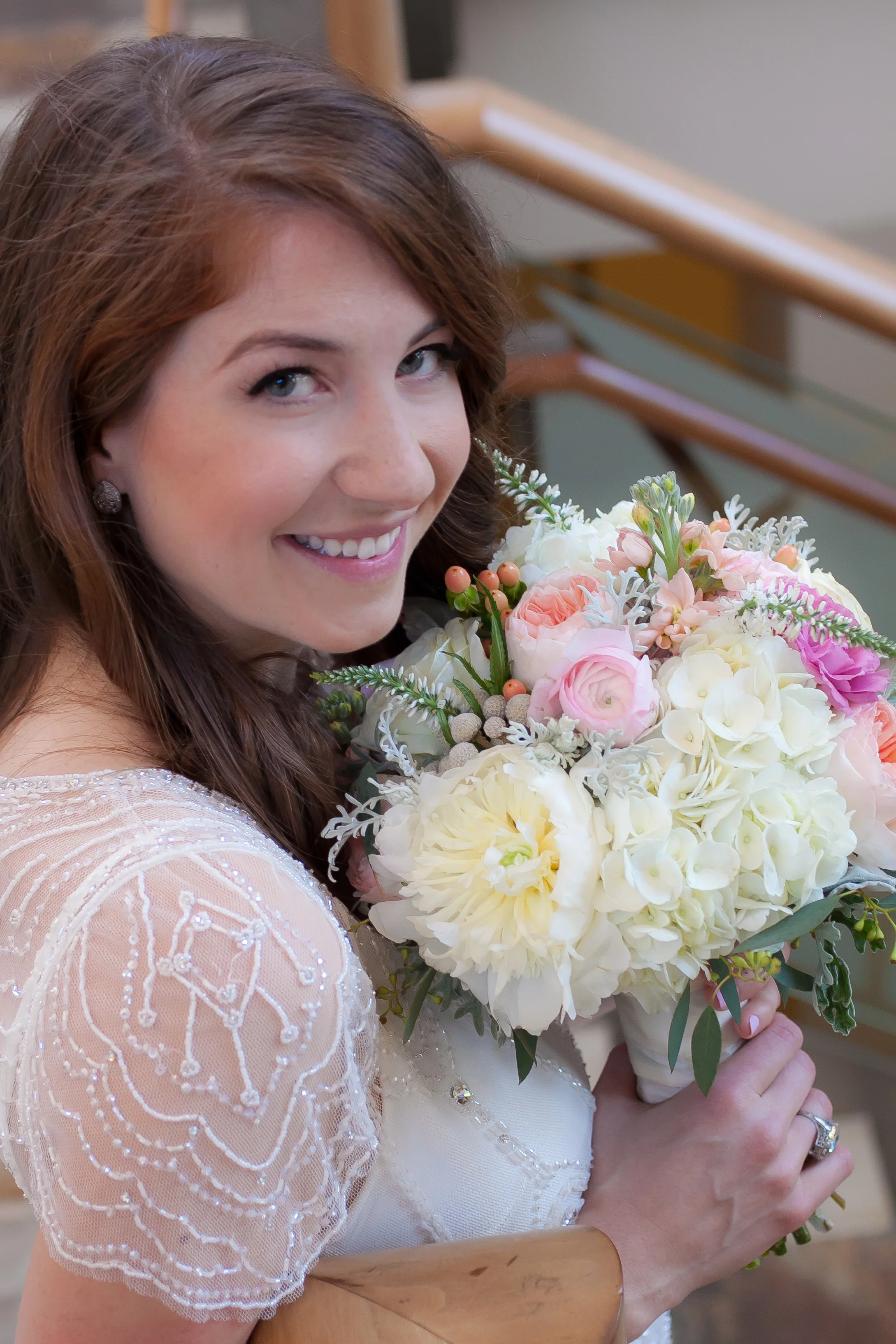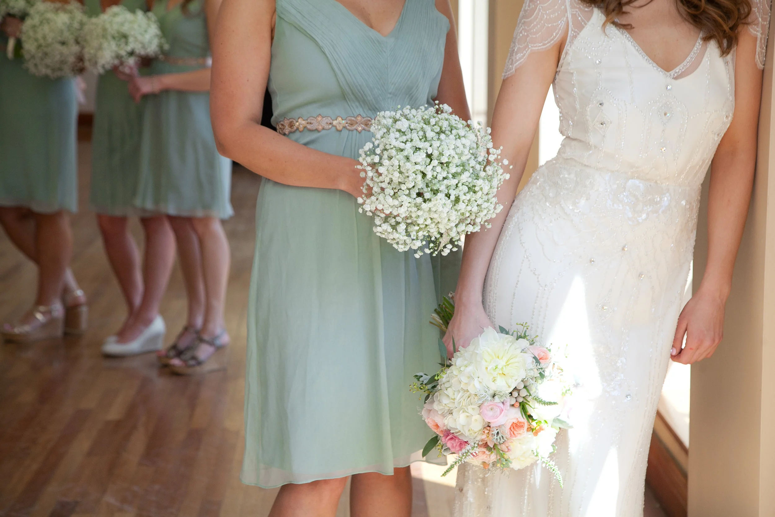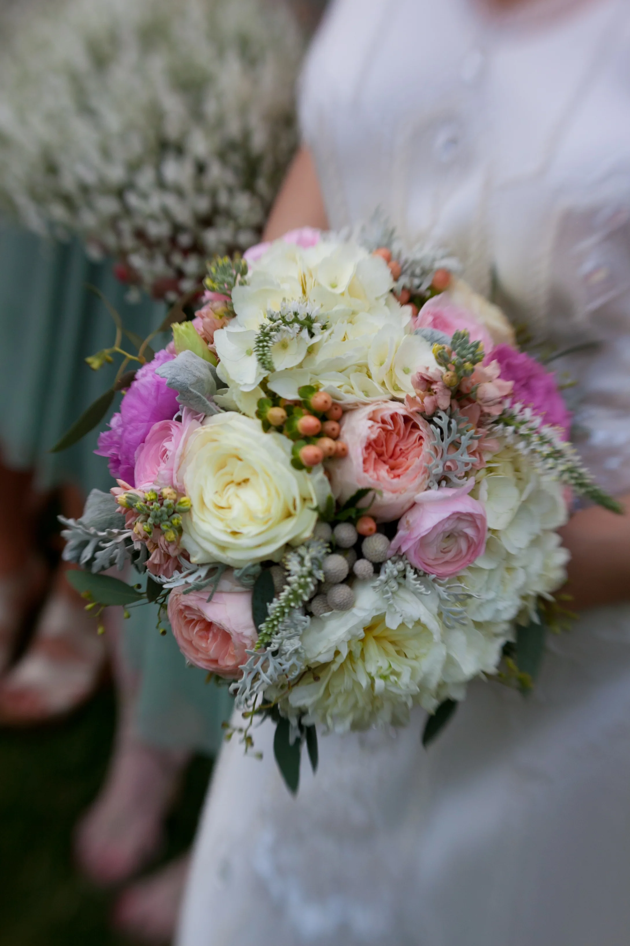 WeddingsGuest UserAgnes Scottwedding, bouquet, boutonniere, flowers, corsage, ceremony, white, coral, peach, pink, baby's breath, vintage, eclectic, gray, sage